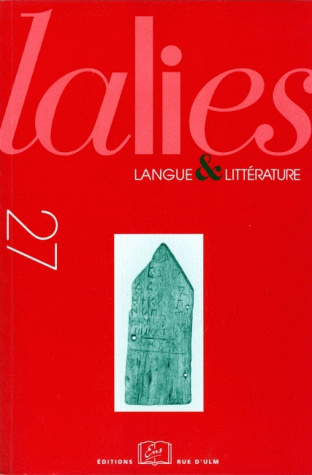 Varia Gadira, Gadiros, Eumélos : un jeu de mots punique sur *gadir " enclos " et *gadí " chevreau " chez Platon (Critias 114b), par Jean-Marie DUCHEMIN Platon, Critias 114b : quelques propositions textuelles, par Renaud VIARD Alexandra de Lycophron : une tragédie de la référence, par Cédric CHAUVIN La forme falisque pipafo / pafo et le futur latino-falisque, par Emmanuel DUPRAZ Pourquoi dit-on " 2 puissance 3 " en mathématiques ? par Peggy LECAUDÉ